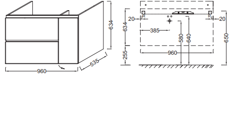 | Комплектация | 1 дверка, 2 выдвижных ящика; без раковины и смесителя |
