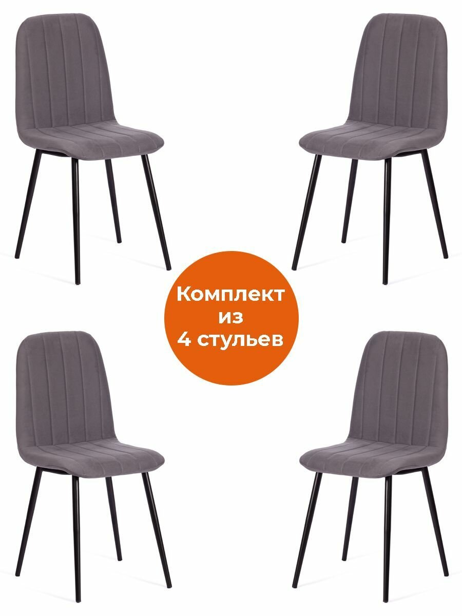 Стул TETCHAIR ARC , Велюр/металл , 46 х 52 х 88 см, темно-серый/черный (4шт/уп)