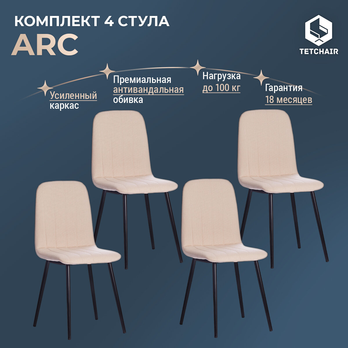 Комплект стульев Tetchair ARC ткань/металл, 46 х 52 х 88 см, бежевый 08/черный (4шт/уп)