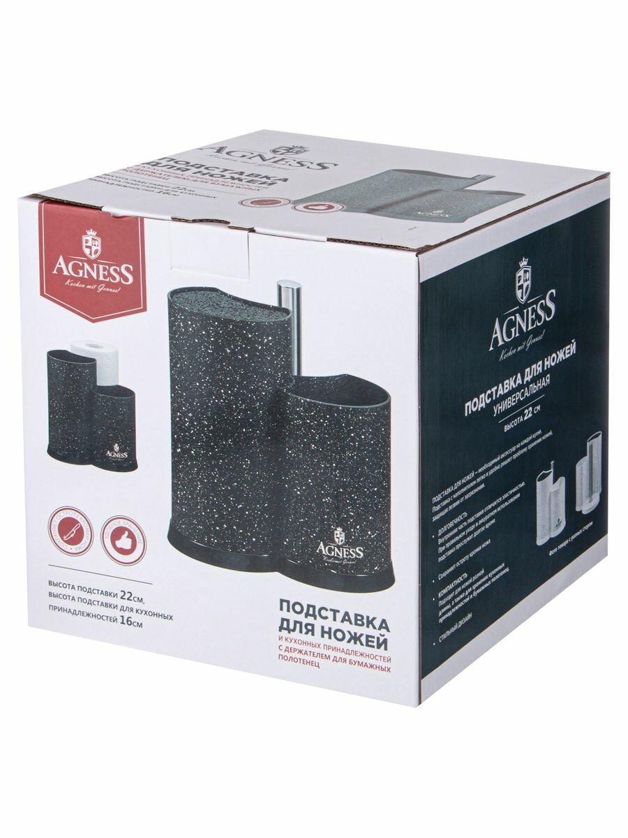 Подставка для ножей Agness универсальная c держателем для полотенец, высота 25х22х16 см