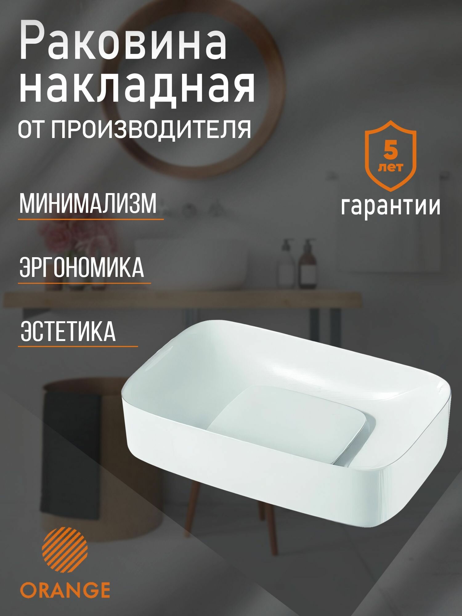Раковина накладная Orange B07-345W санфарфор, белый глянец