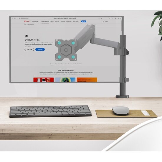 | Плюсы: | Особенность крепления рука+штанга - даёт больше свободы в выборе положения монитора, а так же возможность крепить и в центре стола и с края. Газ лифт справляется с весом Samsung smartmonitor 32'' |