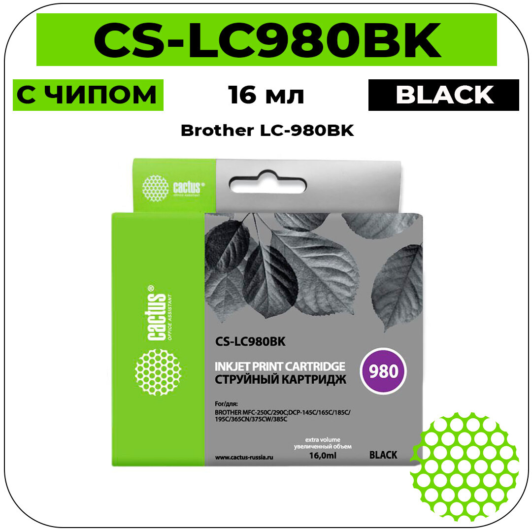 Купить Картридж Cactus CS-LC980BK струйный картридж (Brother LC-980BK) 16 мл, черный