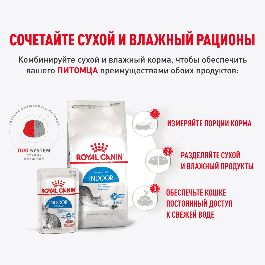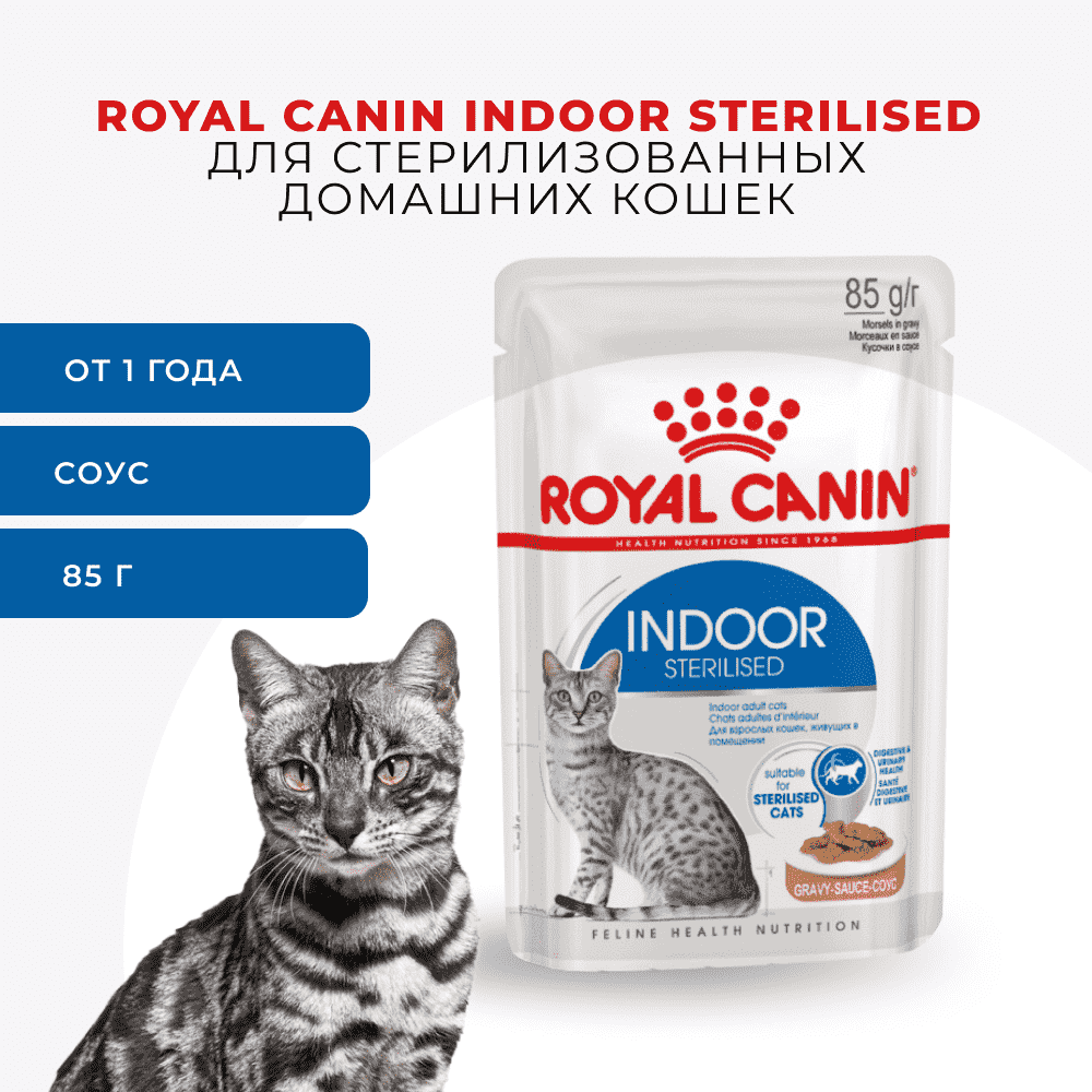 ROYAL CANIN INDOOR STERILISED для взр кастр кот и стерил кош живущих дома в соусе пауч 85 гр 85 гр х 5 шт