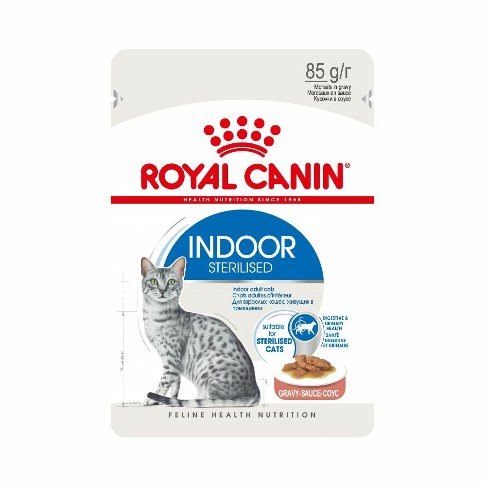 Влажный корм для постоянно живущих в помещении стерилизованных кошек и котов Royal Canin Indoor Sterilised 85гр.×12шт. (кусочки в соусе)