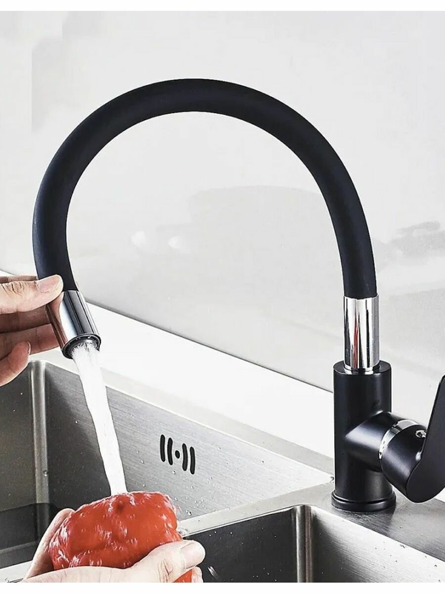 Смеситель для кухни Haiba HB70113-7 с гибким силиконовым изливом, черный/хром.