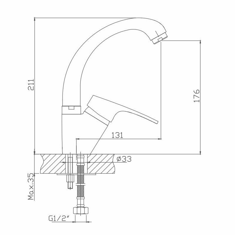 | Комплектация | Смеситель, гибкая подводка 40см., 1/2" x 1/2", керамический катридж 35 мм, гарантийный талон. |
