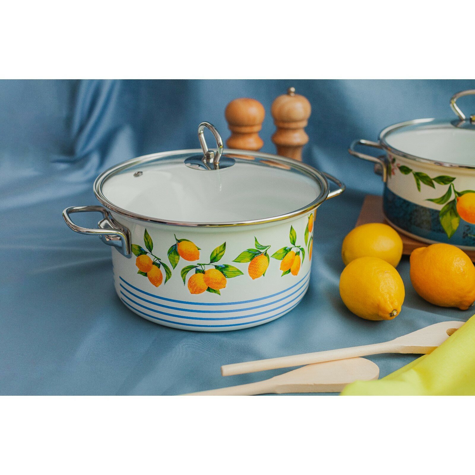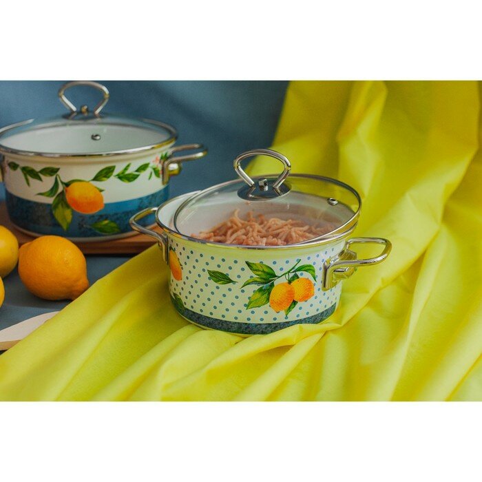 Купить Набор кастрюль Доляна Лимоны, 3 предмета: 1,9 л, 2,5 л, 3,7 л, стеклянные крышки, индукция Доляна .
