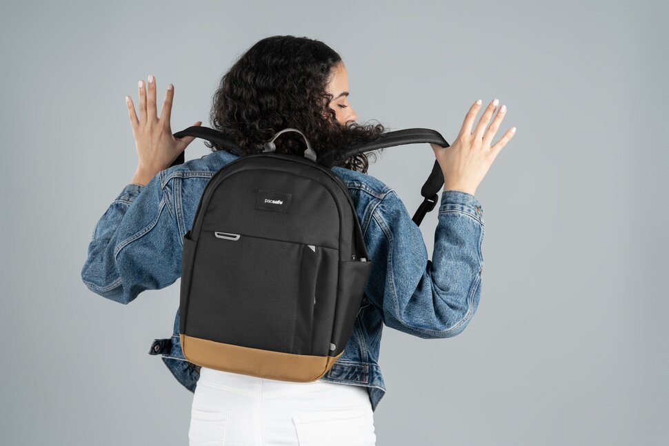 Рюкзак антивор Pacsafe GO 15 черный объем 15 л, вес 530 г, скрытый карман, водоотталкивающая ткань