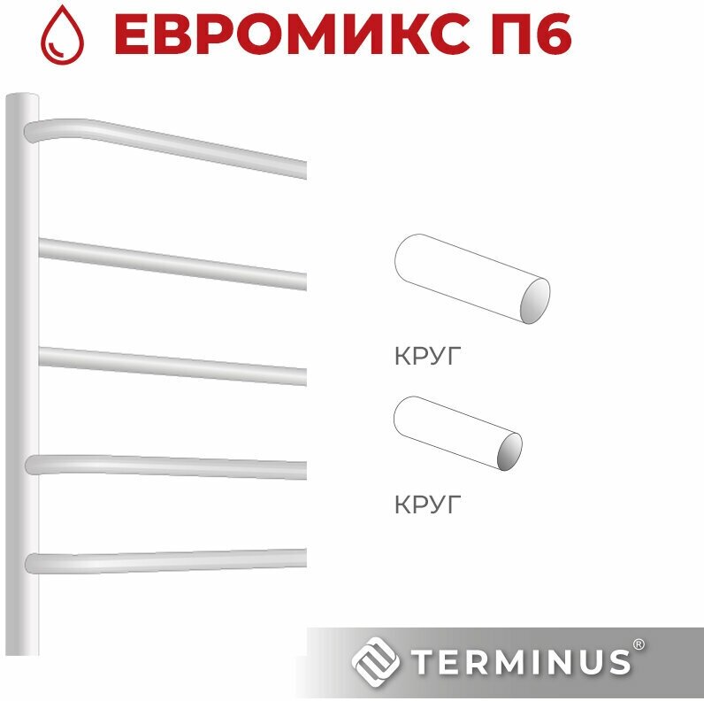 Полотенцесушитель водяной TERMINUS (Терминус) Евромикс П6 500х600 мм, нижнее подключение, нержавеющая сталь, гарантия 10 лет интересное: