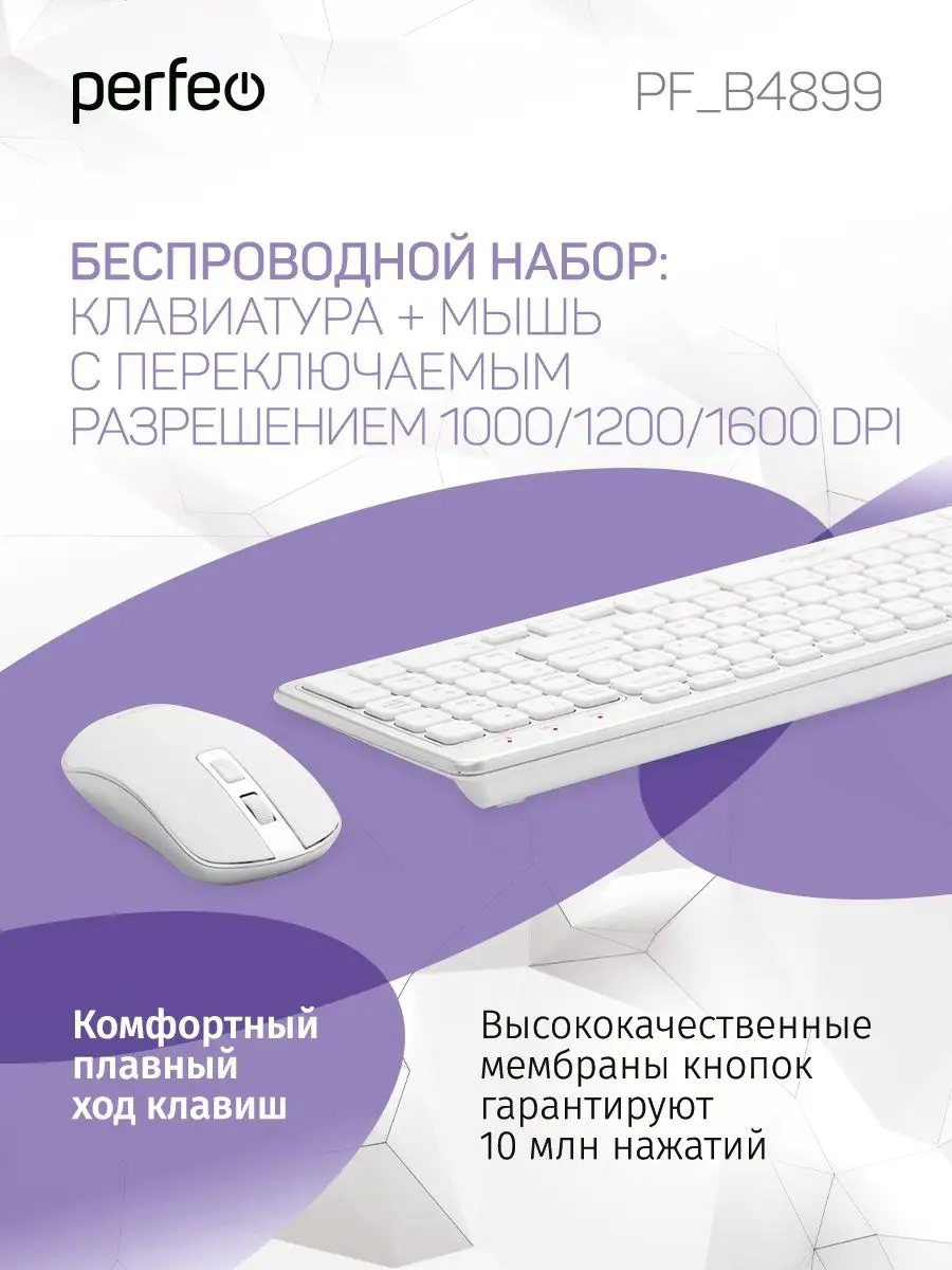Купить Perfeo Комплект мышь + клавиатура беспроводная "Union", русская раскладка, белый, 000-1200-1600 DPI