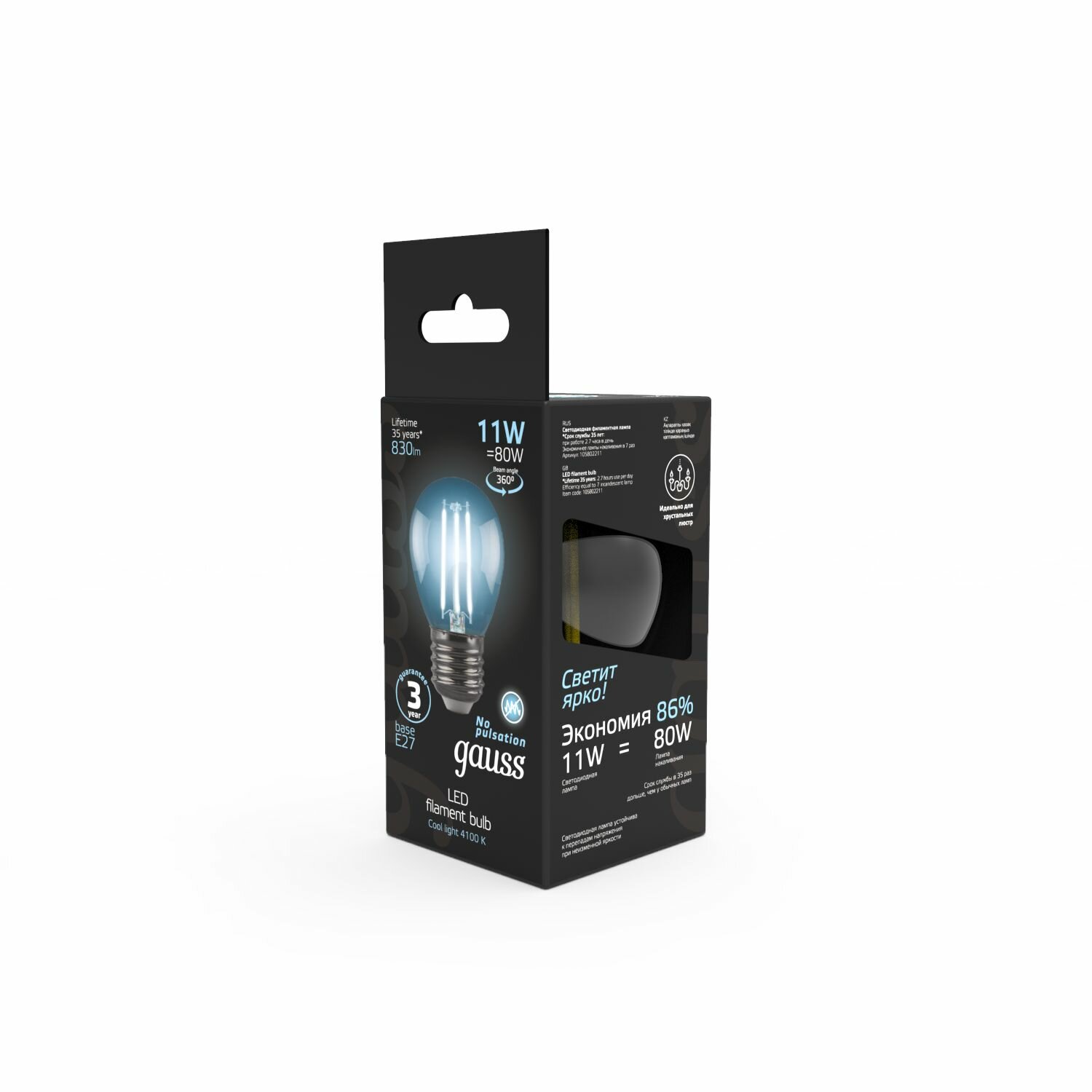 СохранитьЛампа Gauss Filament Шар 11W 830lm 4100К Е27 LED интересное: