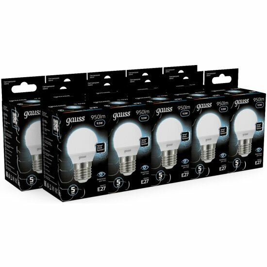 (5 шт.) Светодиодная лампочка Gauss Globe G45 9.5Вт 150-265В 4100K E27