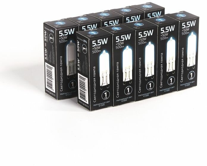 Набор из 5 штук Лампа Gauss G9 AC220-240V 5.5W 500lm 4100K стекло LED 1/10/200