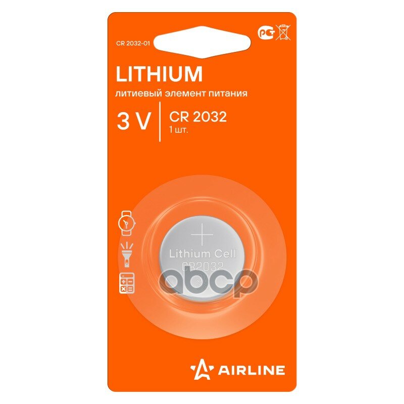 AIRLINE CR203201 Батарейка литиевая AIRLINE Lithium CR2032 3V (1 шт) CR2032-01
