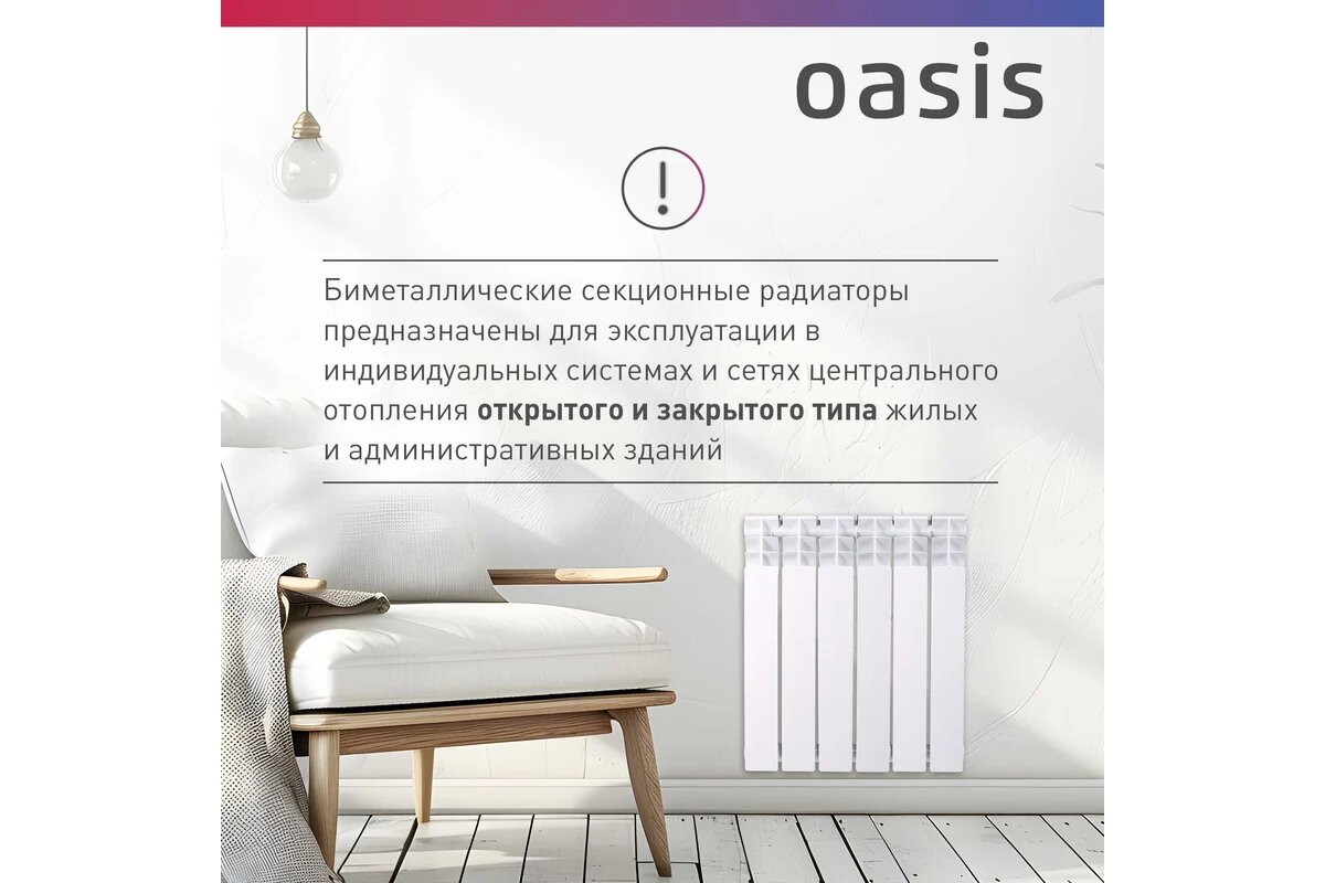 Биметаллический радиатор Oasis ECO 500/80 10 секций, 1520 Вт, Россия