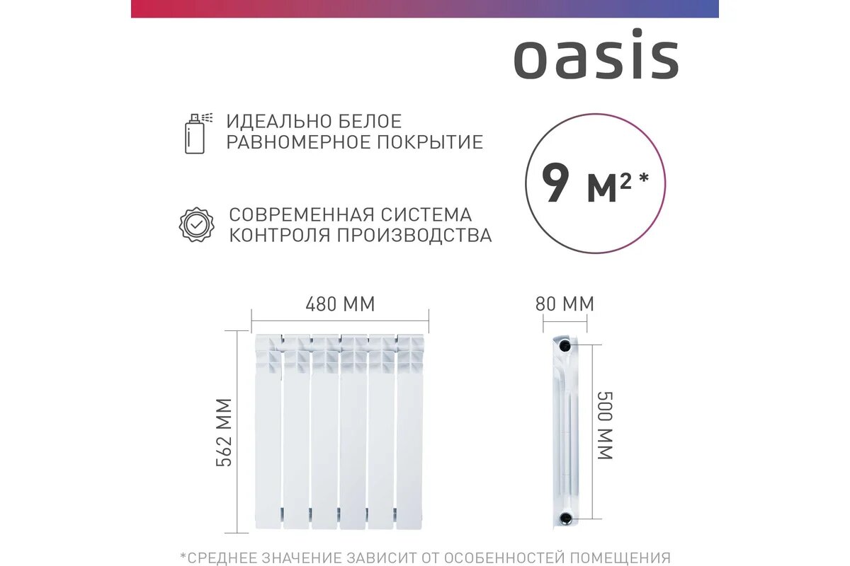Биметаллический радиатор Oasis ECO 500/80 9 секций, 1368 Вт, Россия