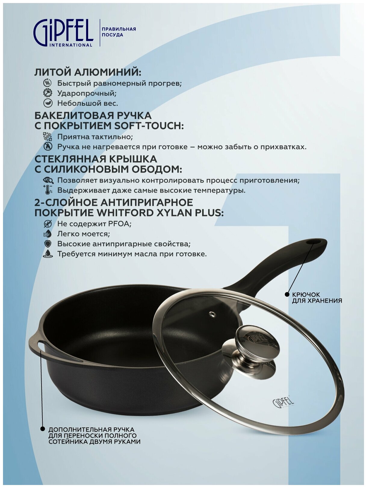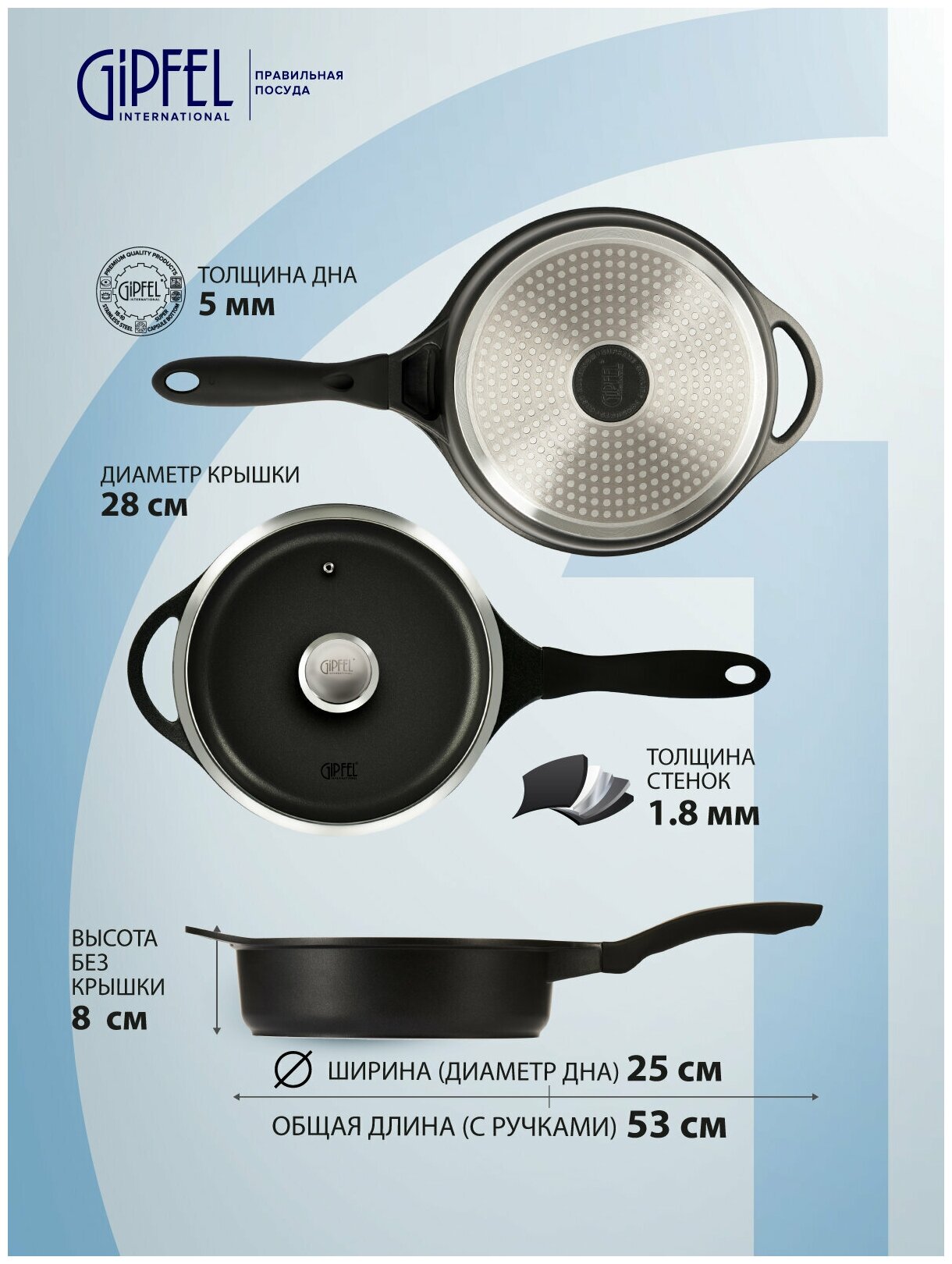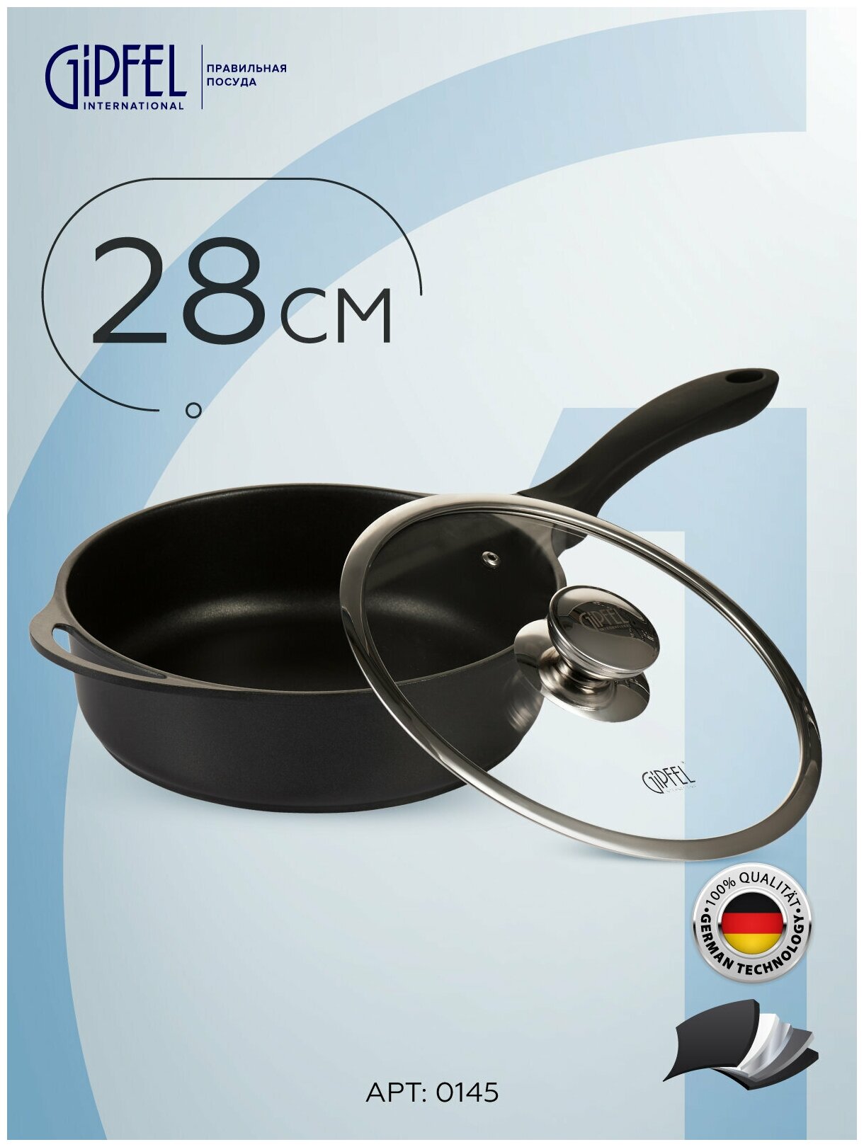 Сковорода-сотейник Gipfel Richmond 0145 28 см черный интересное: