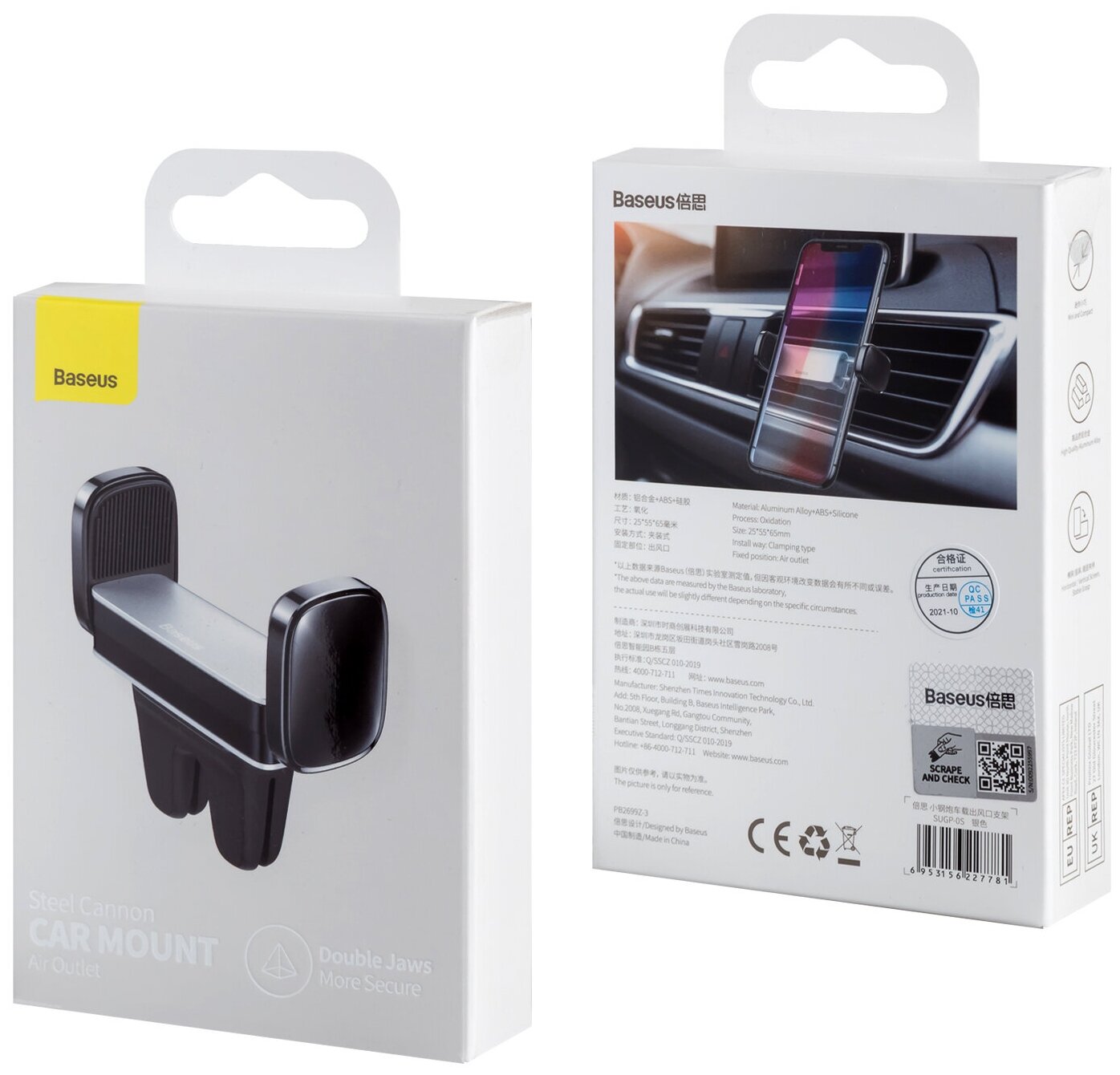 Автомобильный держатель BASEUS Steel Cannon Air Outlet, серебристый, на воздуховод