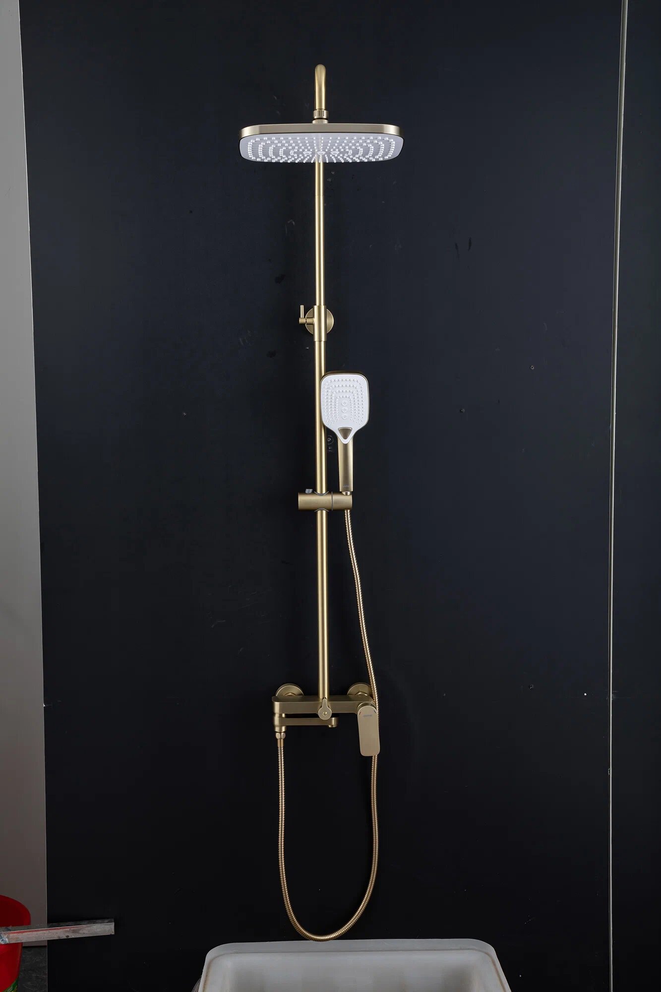| Комплектация | ручной душ (душевая лейка) / верхний душ (тропический) / Смеситель / стойка / штанга / душевой шланг / крепление ручного душа |