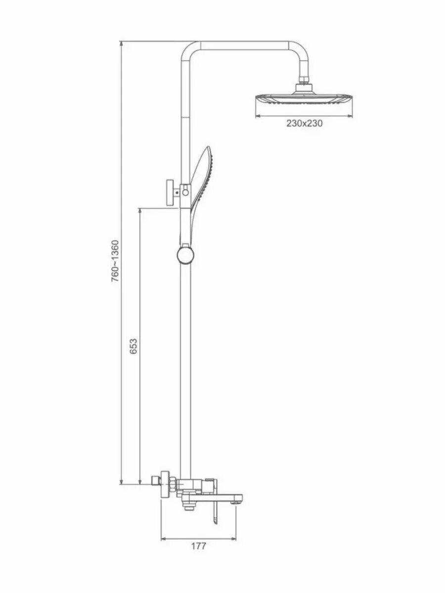 | Комплектация | ручной душ (душевая лейка) / верхний душ (тропический) / Смеситель / стойка / штанга / душевой шланг / крепление ручного душа |