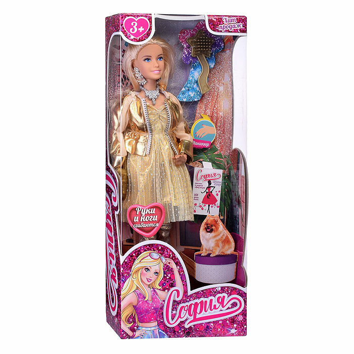 СохранитьКукла Карапуз "София" 29см с маникюром в желтом платье с блестками и золотистой курточке, руки и ноги сгибаются, с аксессуарами интересное: