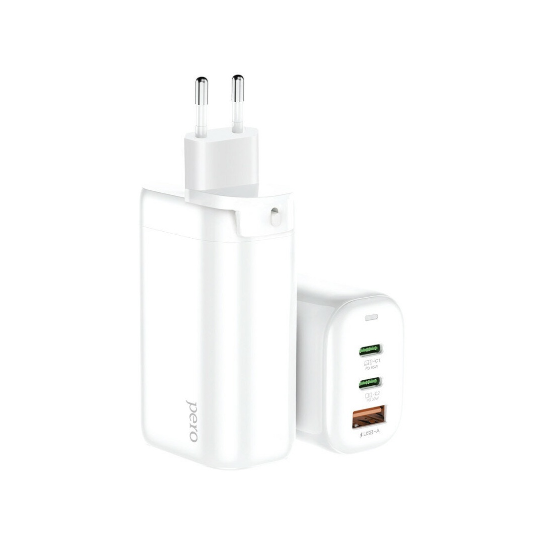 PERO Сетевое зарядное устройство TC06 GaN, 1xUSB-A QC + 2xPD, 65W, LED-индикатор white (Белый)
