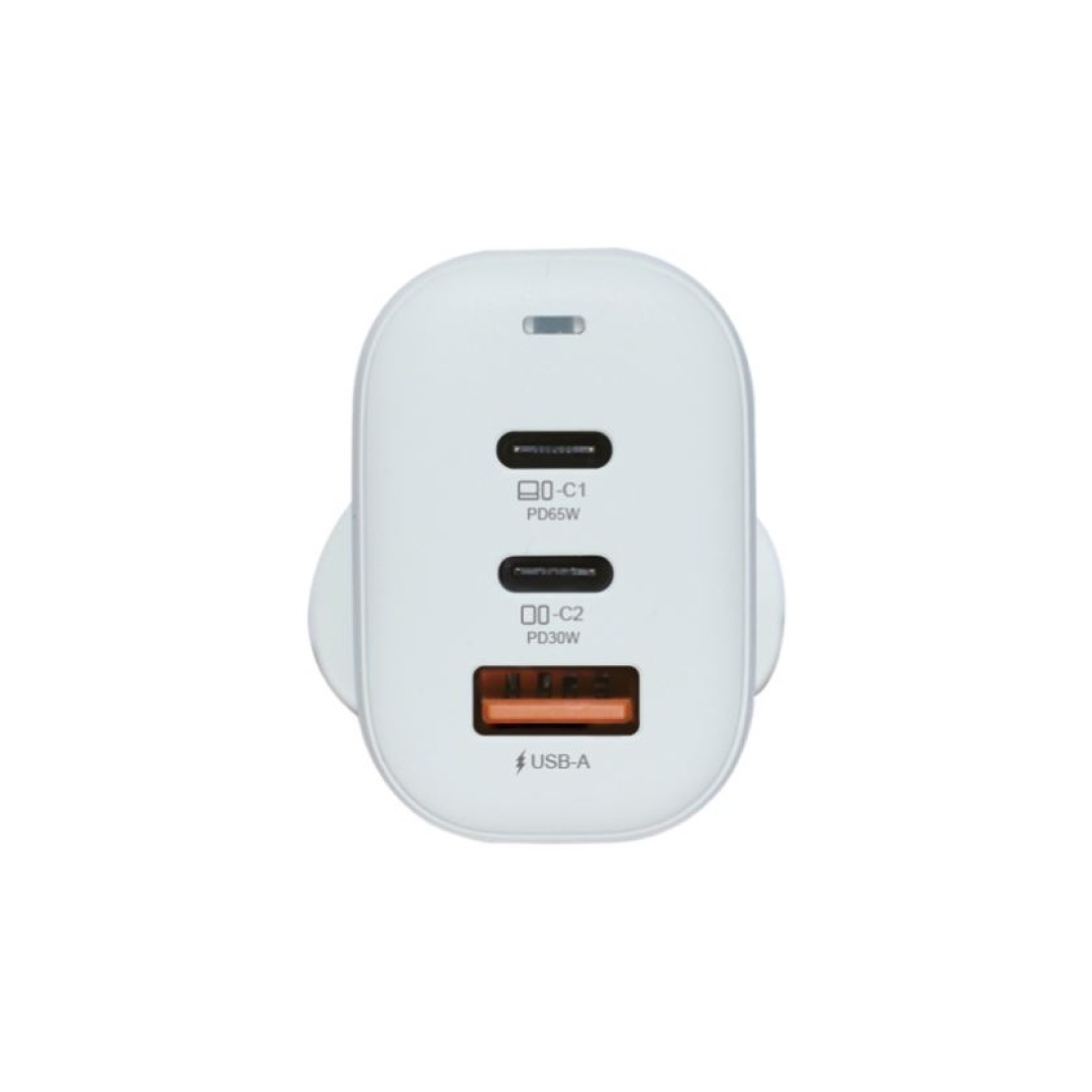 Сетевое зарядное устройство PERO TC06 GaN, 1xUSB-A QC + 2xPD, 65W, LED-индикатор (Белый)