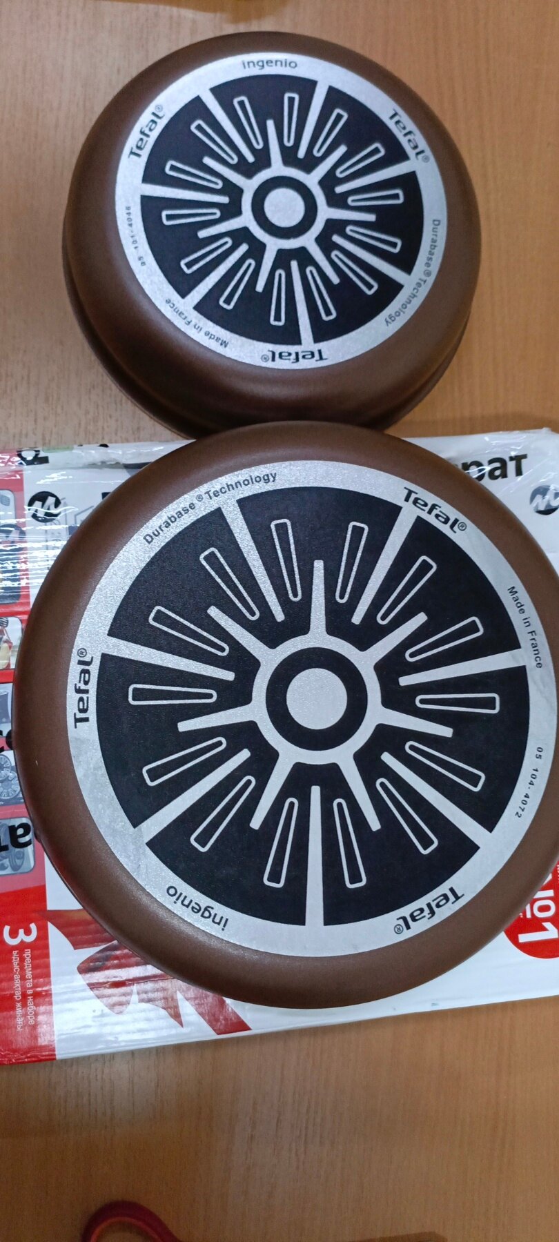 | Минусы: | Были другие сковородки ingenio, эти должны были быть куплены в дополнение - однако есть большая разница между «сериями» Данный набор проигрывает сильно серии «ingenio 5» в характеристиках. Металл более тонкий, антипригарные свойства хуже. Визуально также отличаются. У этой серии белая кайма по краю сковородки. В комплекте значительно менее удобная, из дешевого пластика ручка. |