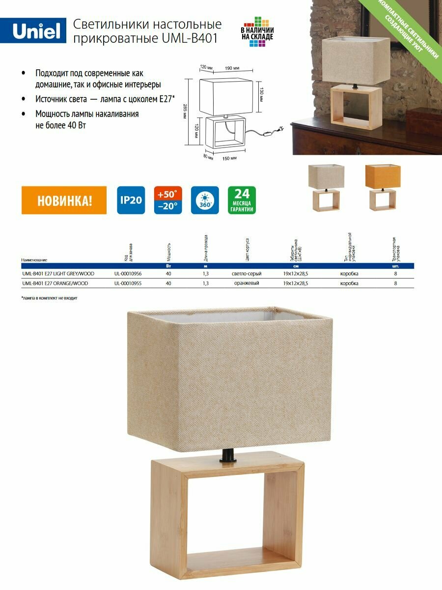 Ниже Вы можете прочитать отзывы на Светильник настольный декоративный под лампу Е27. UML-B401 E27 LIGHT GREY-WOOD. 40W. Механический выключатель. Светло-серый., ознакомится с подробными характеристиками, посмотреть интересные обзоры и фотографии на Светильник настольный декоративный под лампу Е27. UML-B401 E27 LIGHT GREY-WOOD. 40W. Механический выключатель. Светло-серый..