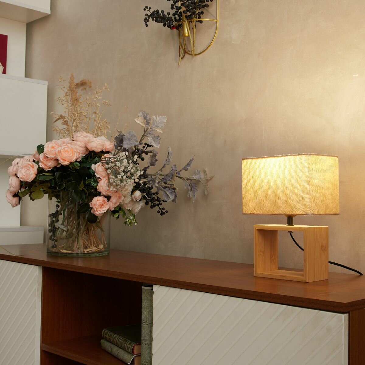 Светильник настольный декоративный Uniel UML-B401 E27 LIGHT GREY/WOOD