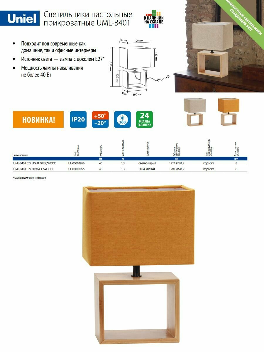 Светильник настольный декоративный Uniel UML-B401 E27 ORANGE/WOOD