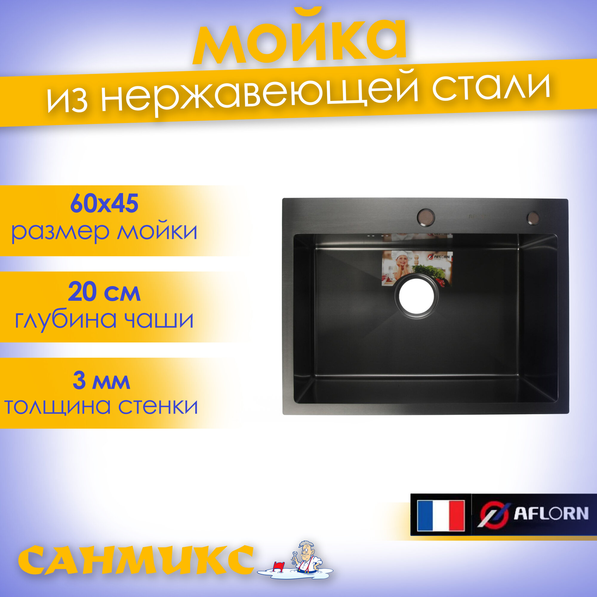 Мойка кухонная врезная из нержавеющей стали AFLORN толщина 3мм. 60х45см. Графит