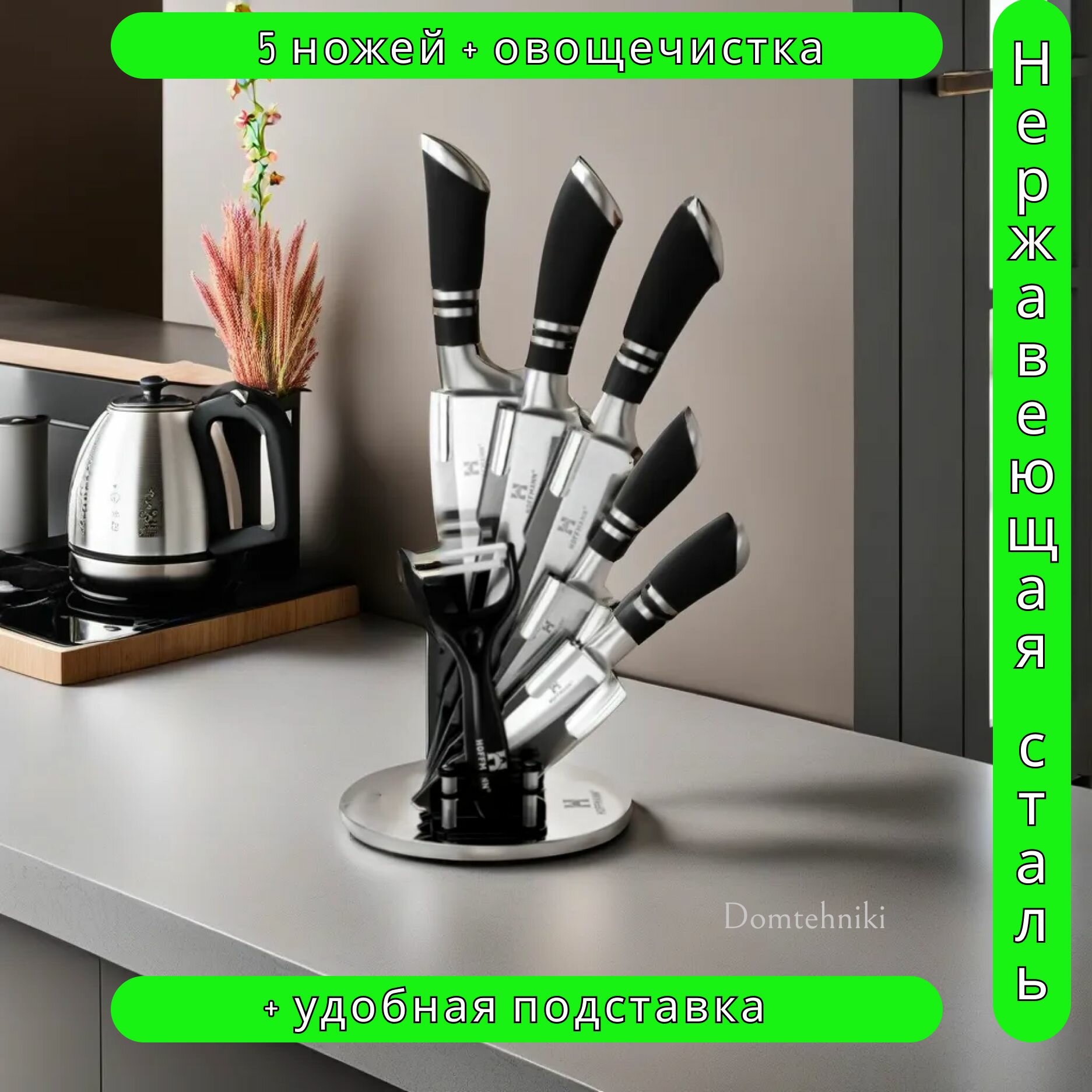 количество ножей оптимальное подставка удобная с поворотом на 360 |