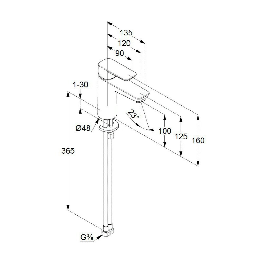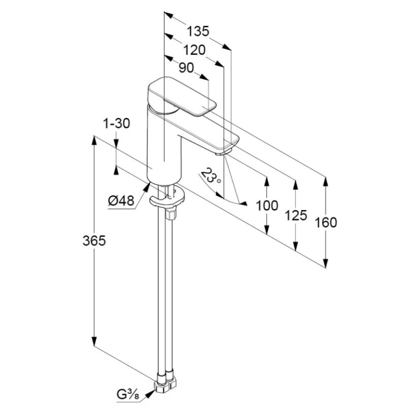 Смеситель для умывальника Kludi Pure&Style, арт. 402920575, неповоротный излив, без донного клапана, высота излива 100 мм
