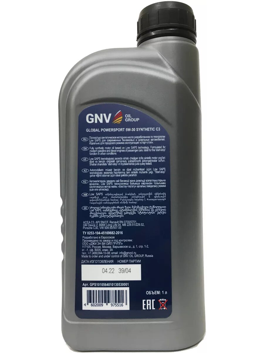 GNV Global Power Sport 5W-30 Synthetic C3 синтетическое моторное масло 1л.,GPS1010564010130530001