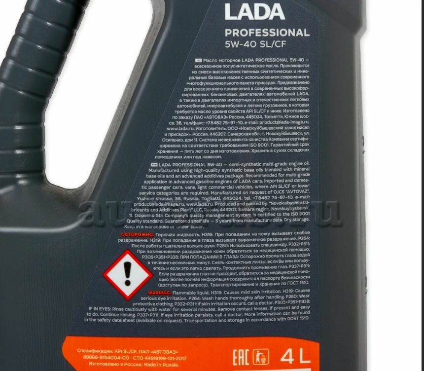 Масло lada 5w40 professional api sl/cf 4л п/с lada image