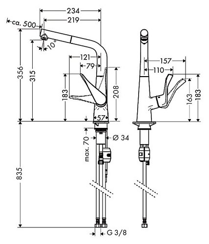 | Высота излива | 315 мм |