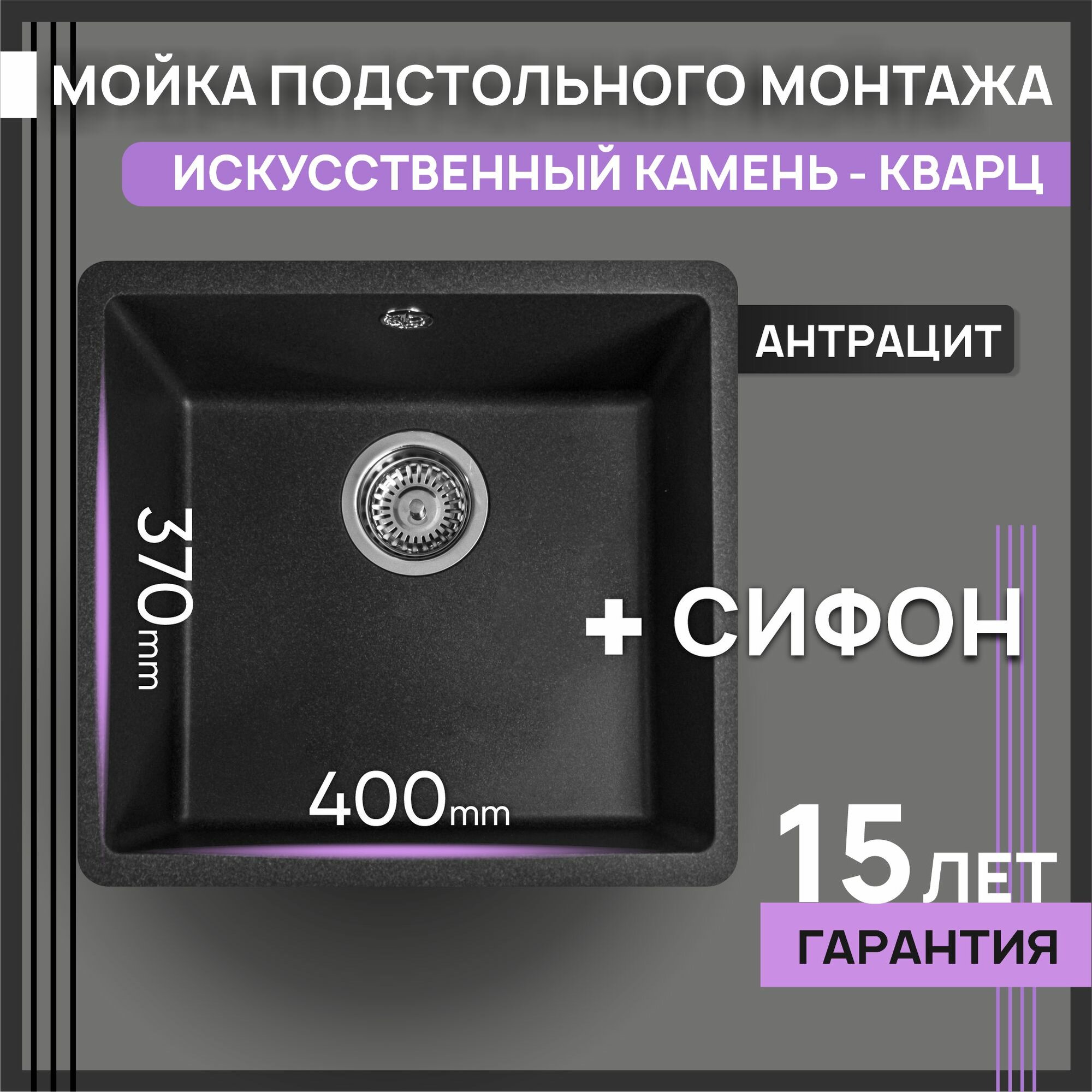 Кухонная мойка, раковина, Ring 400, антрацит интересное: