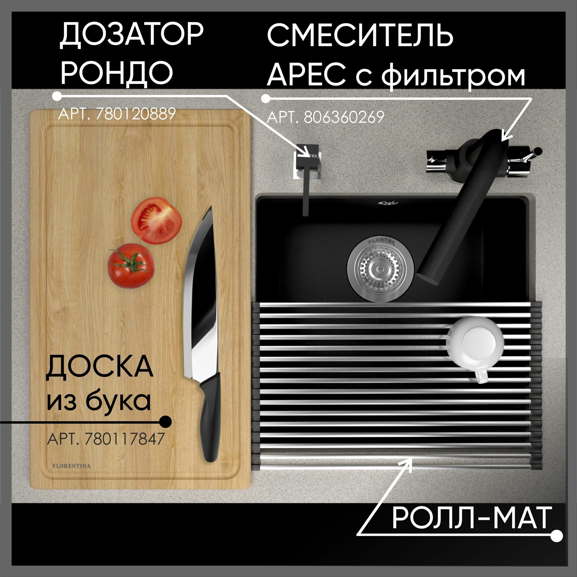 Кухонная мойка Flortek Ринг 400, черный
