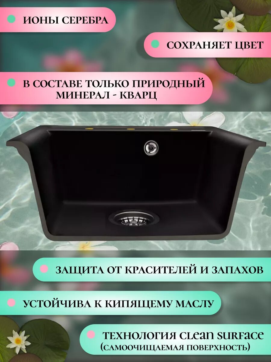 Кухонная мойка, раковина, Ring 500, кварцевый композит, черный