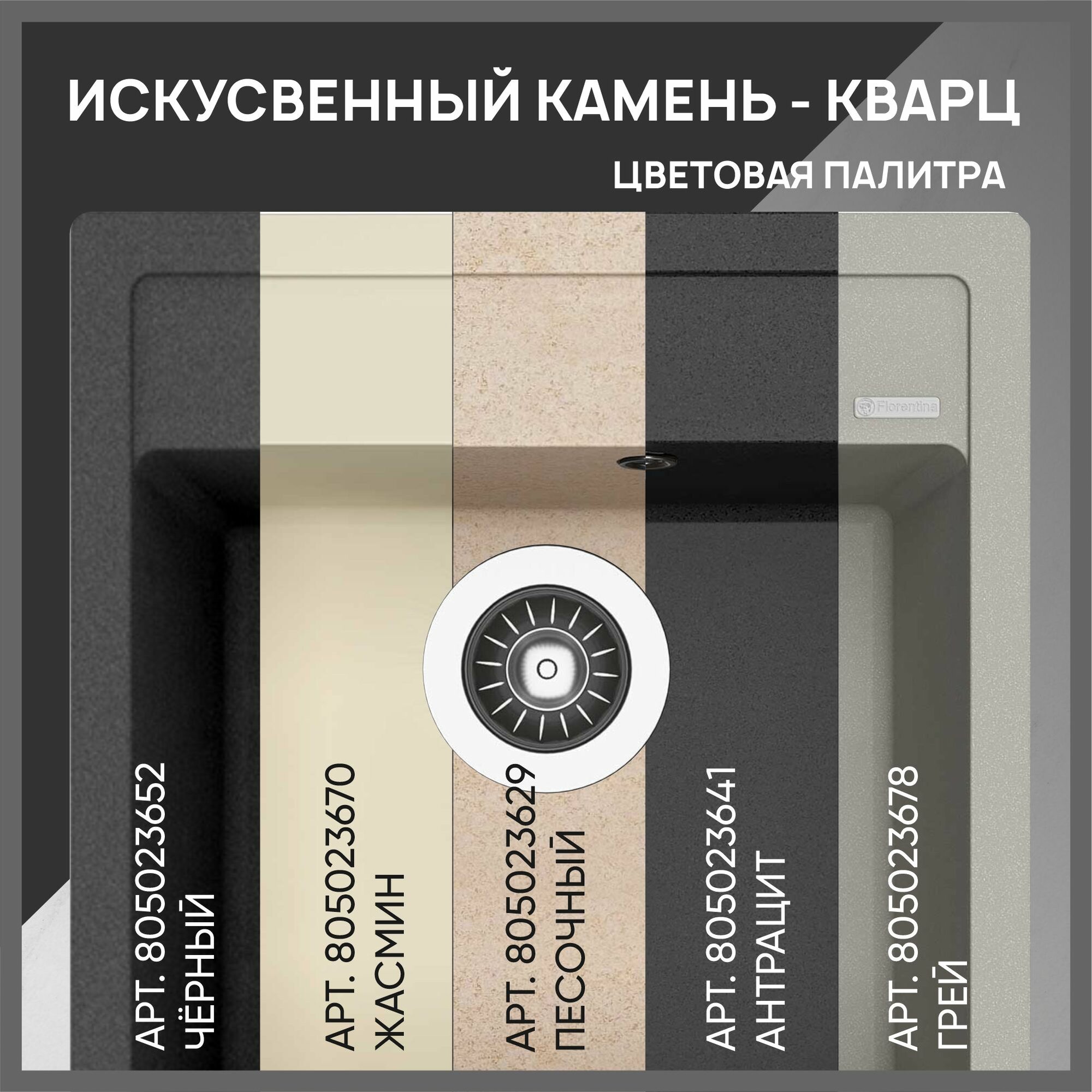 Мойка,раковина для кухни каменная "Ring" 500, грей FS