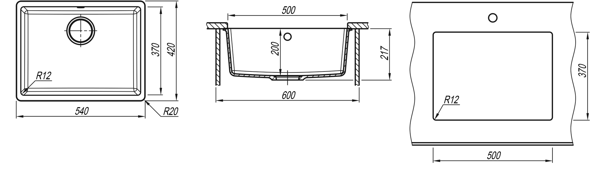 Мойка,раковина для кухни каменная "Ring" 500, черная FS