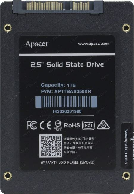 Твердотельный накопитель SSD 1Tb Apacer Panther AS350X, (AP1TBAS350XR-1), 2.5 SATA III, чтение: 560 МБ/с, запись: 540 МБ/с, 3D V-NAND