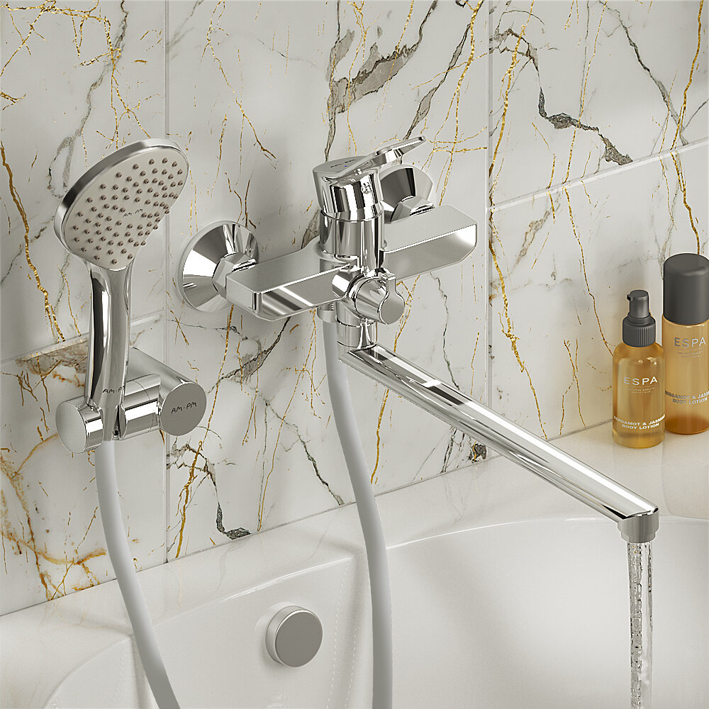 Купить Смеситель для ванны с душем AM.PM Brava, с длинным изливом 300 мм, латунь, хром