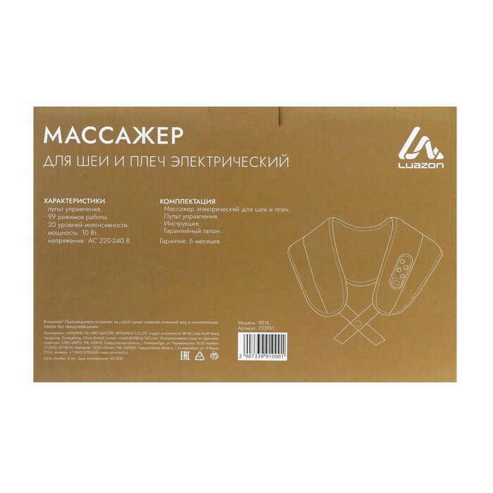 Массажер для спины и шеи LuazON 9016, наплечный, пульт, 99 режимов, 220 В