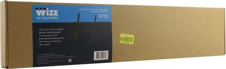 Wize Крепеж WT55 для 32"-80" LCD телевизоров, VESA 600x400, угол наклона 3-12 , расстояние от стены 4 см, до 45 кг, черн., розн. упаковка