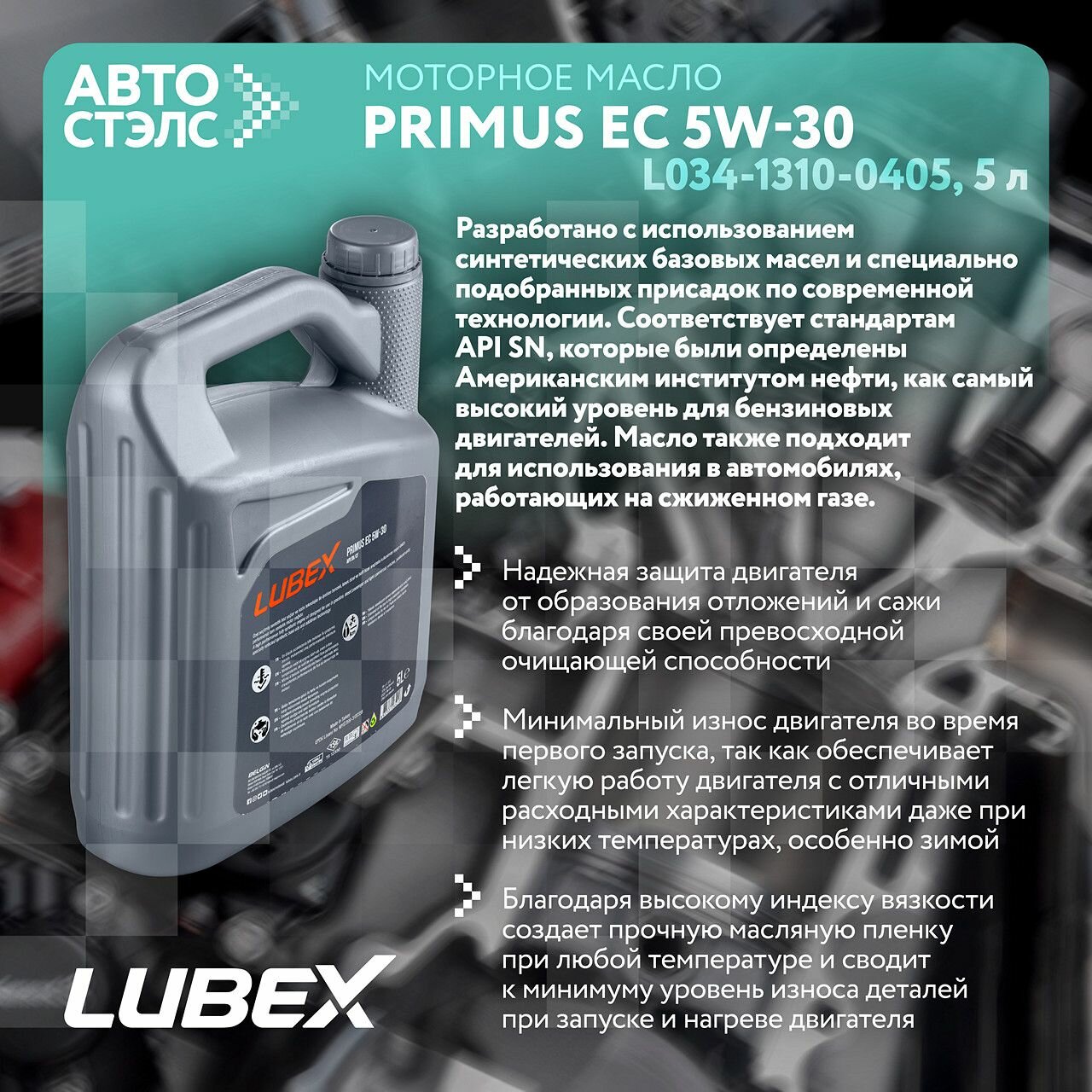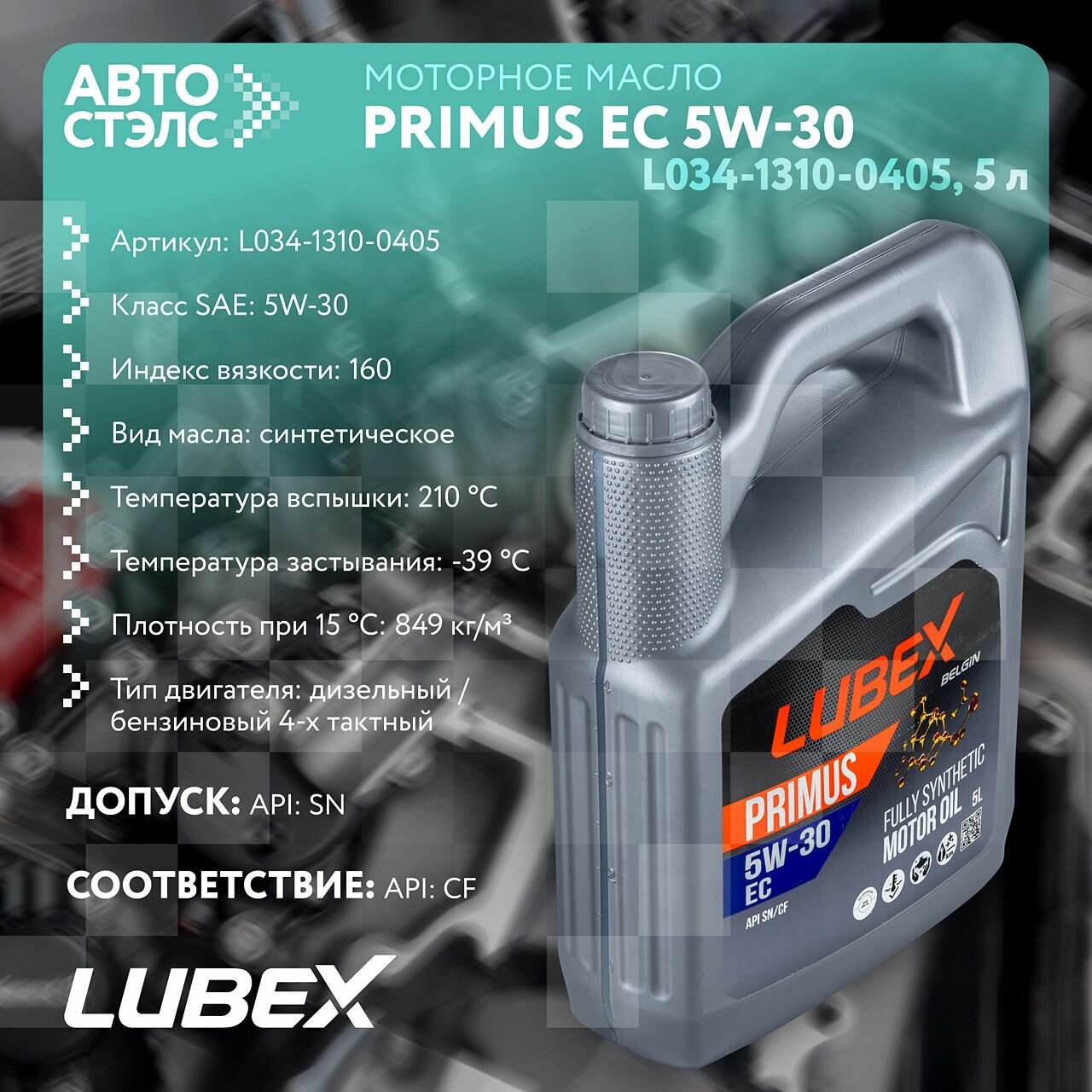 LUBEX L034-1310-0405 Масло моторное PRIMUS EC 5W-30 5L 1шт