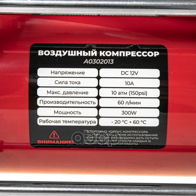 Компрессор автомобильный двухцилиндровый arnezi 10 бар, 60 л/мин, 300 вт, ac620 double power