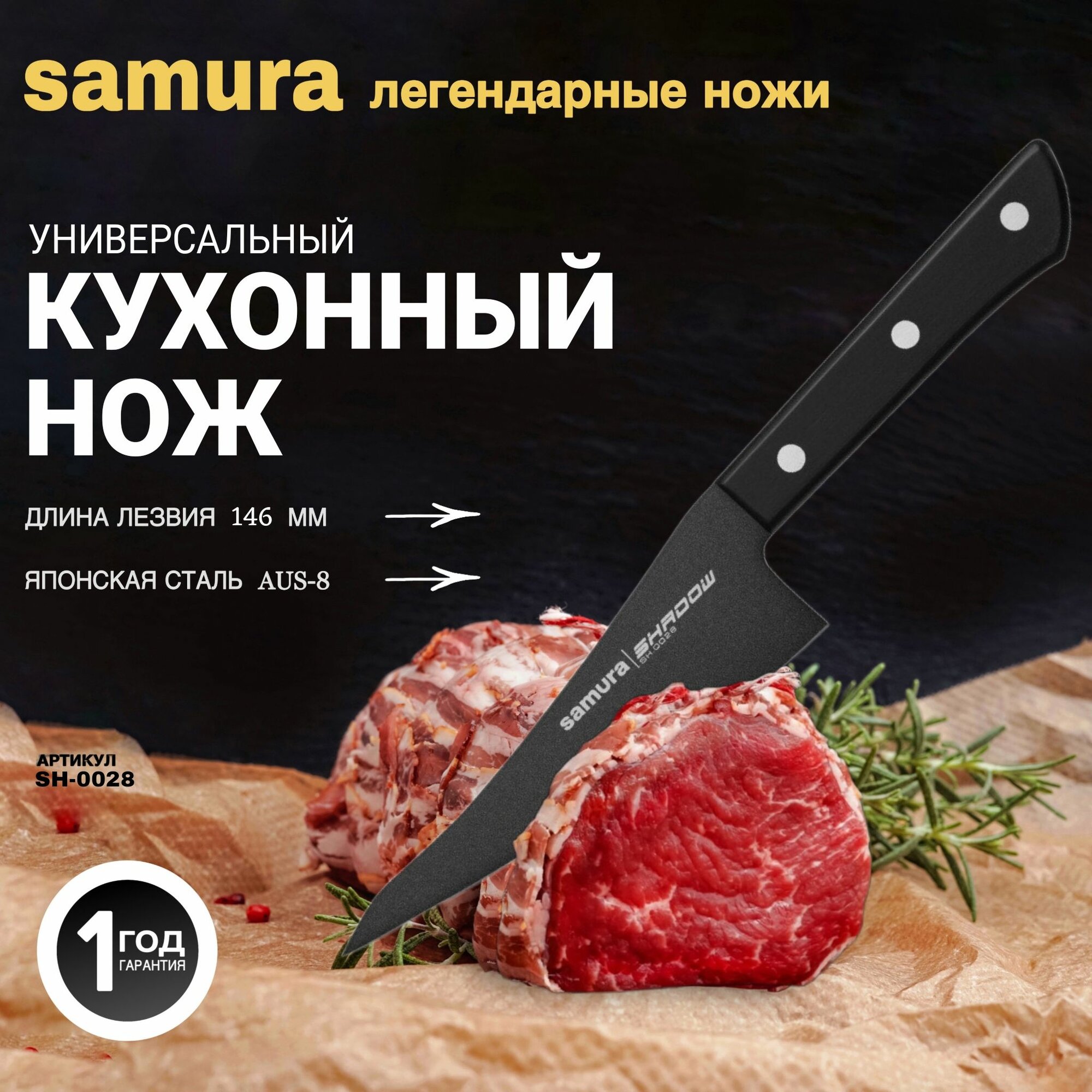 Нож кухонный универсальный Samura SHADOW SH-0028, 14.6 см, черный интересное: